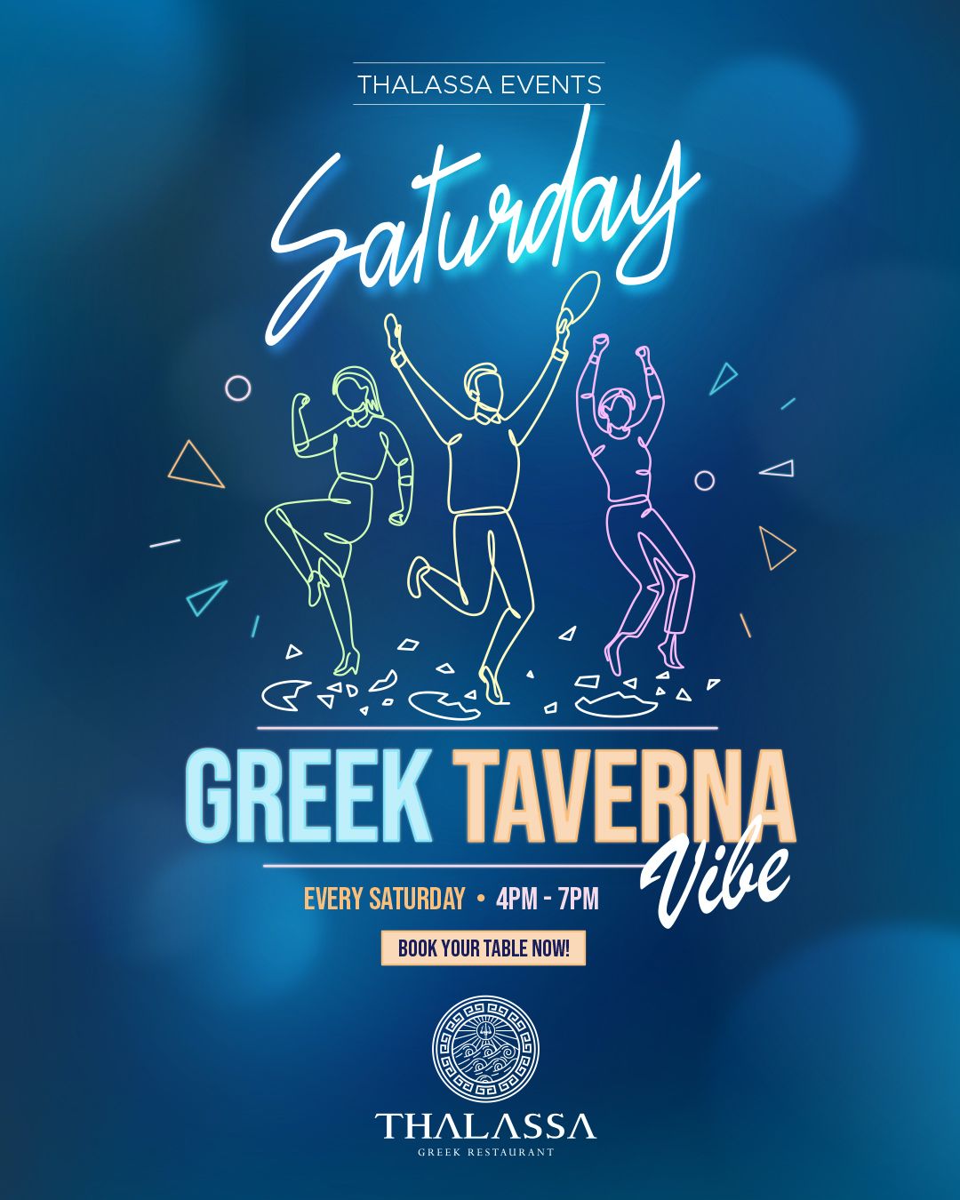 Experience the magic of Greece every Saturday night at Thalassa with our enchanting Taverna Vibes. Immerse yourself in the vibrant atmosphere as a live band brings the soul of Greece to life with captivating music, setting the perfect tone for an unforgettable evening. Savor authentic Greek flavors, share moments with loved ones, and let the rhythm of the music carry you away. Whether you’re dancing to traditional tunes or simply soaking in the ambiance, Taverna Vibes at Thalassa promise an evening filled with joy, connection, and the true essence of Greece.